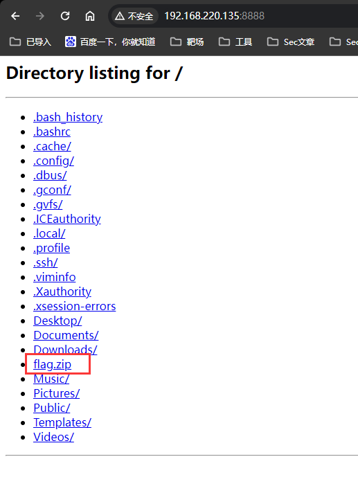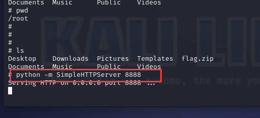 接着把flag.zip给传送出来,还是老手法,在靶机这里使用python开启http服务,不过靶机里面的python环境是2的版本,命令少许不同