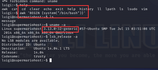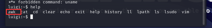 我们这里就可以使用awk提权,参考文章:Linux Restricted Shell绕过技巧总结 - FreeBuf网络安全行业门户