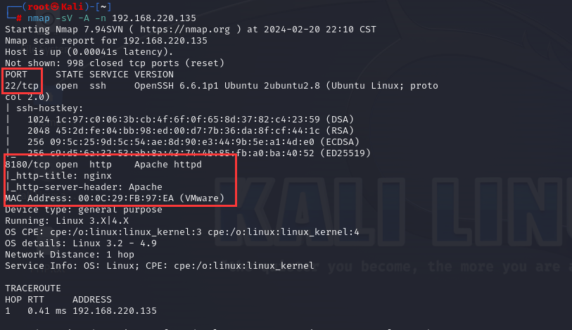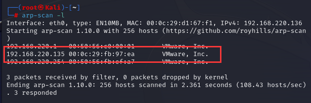 Kali Linux地址为192.168.220.136