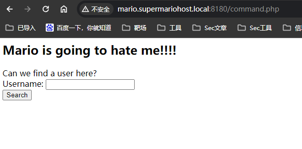 访问command.php发现是一个查询的网站 http://mario.supermariohost.local:8180/command.php