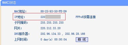 2、如果这个WAN地址是属于公网IP范围的,且百度下IP这二字母看结果相同的,表示自己就有公网IP了。