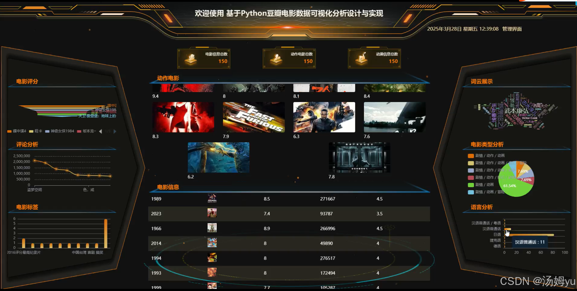 在信息爆炸的当下,互联网中蕴藏着海量数据,电影领域亦不例外。豆瓣作为国内极具影响力的电影分享与评论平台,积累了丰富且多元的电影数据,涵盖电影基本信息、用户评分、评论以及各类标签等。这些数据宛如一座宝藏,蕴含着用户行为模式、电影市场走向、大众审美偏好等有价值的信息。然而,原始数据往往繁杂无序,如同未经雕琢的璞玉,难以直接发挥其作用