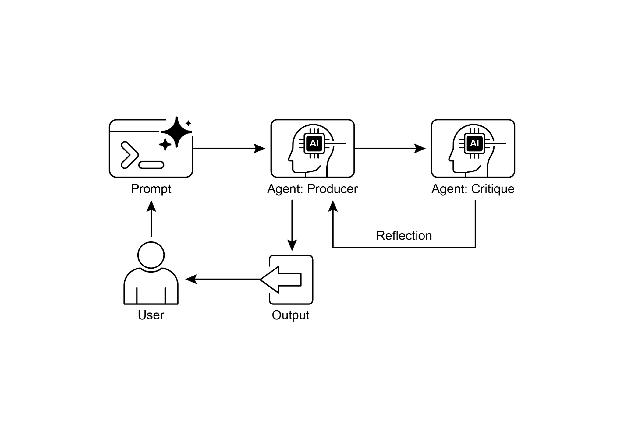 反思模式的一个关键且高效的实现是将流程分离为两个不同的逻辑角色:生产者和评审者。这通常被称为"生成器-评审者"或"生产者-审查者"模型。虽然单个 Agent 可执行自我反思,但使用两个专门 Agent(或两个具有不同系统提示的独立 LLM 调用)通常能产生更稳健和客观的结果。