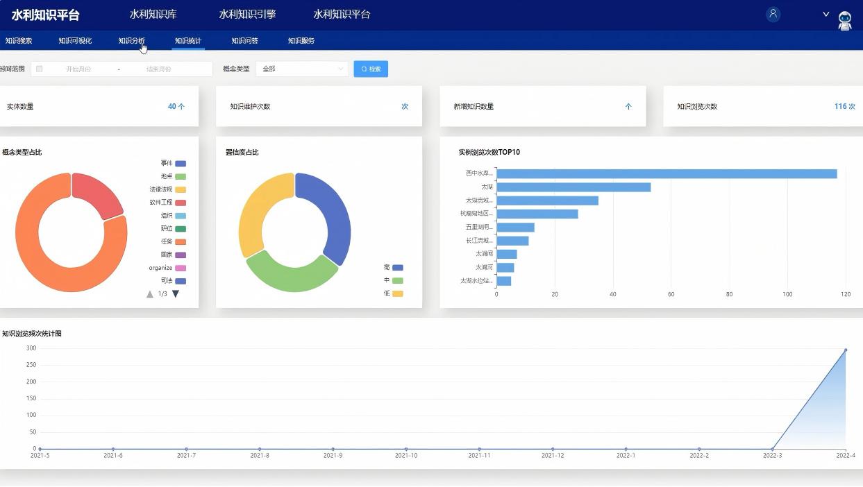 知识中台利用机器学习、深度学习技术,感知水利对象、认知水利规律,为数字孪生提供智能内核,支持基于时间的正向智能推理和反向溯源分析,为新一代水利业务应用创新提供支撑。