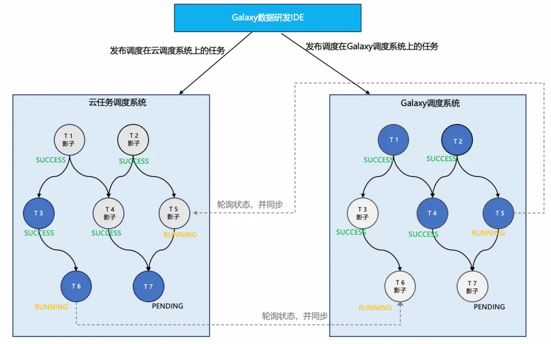 因此架构上一套研发平台需要同时适配两套调度系统(云任务调度+Galaxy自研调度系统 ),并支持逐步往自研Galaxy调度的平滑演进。