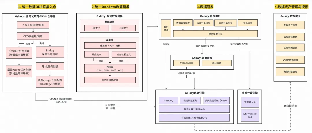 下文主要对两个关键模块,统一ODS自动化入仓平台、Onedata数据建模的实现方案进行解析。