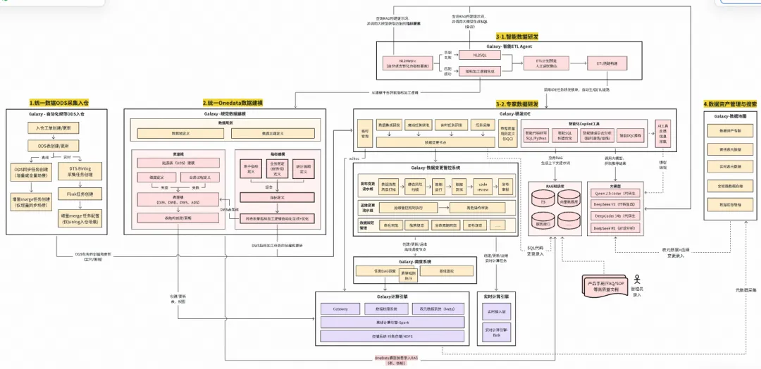 实现智能ETL Agent后的智能化L2阶段Galaxy研发平台架构(红色部分为Agent相关模块)