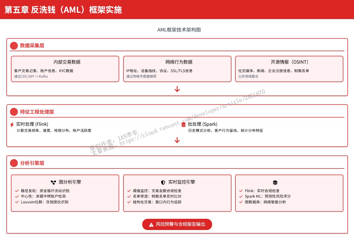 一个成熟的AML平台必须采用一种混合策略,它结合了实时规则、机器学习和深度图分析,没有任何单一技术能够独立应对所有挑战。监管机构要求金融机构执行明确的规则检查,Flink的低延迟流处理是实现这些高容量、简单规则检查的理想工具。然而,犯罪分子深知这些规则,并会采用"结构化"和"分层"等手段来规避它们。为了检测这些更隐蔽的行为,需要利用Spark在海量历史数据上训练机器学习模型,以识别与正常行为模式的细微偏差。而对于最高级的、涉及协同网络的有组织犯罪,只有通过图分析技术才能揭示实体间的深层联系。因此,一个强大的AML系统必须将这三者有机结合:Flink用于实时合规检查,Spark ML用于预测性风险评分,而Spark GraphFrames或专用图数据库则用于进行网络分析。这三者的输出相互补充,形成了一个多层次、纵深化的防御体系。
