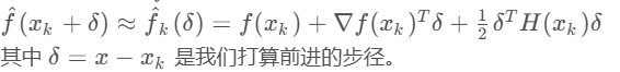 思路: 我们不是直接最小化复杂的原函数 f,而是在当前点 xk 处,最小化它的局部二次近似函数 f^(由泰勒展开得到):