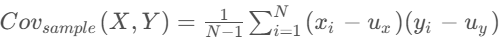 N 是样本数量 x_i 和 y_i 是第i 个样本点的值 u_x 和 u_y 是X和Y的样本均值