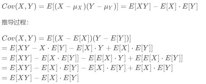 这个公式表示:两个变量各自偏离其均值的乘积的期望值,协方差公式可以进一步推导为更简洁的形式: