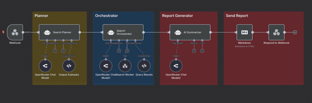 构建了代理工作流,但该工具无关紧要。我构建的完整代理架构如下所示: