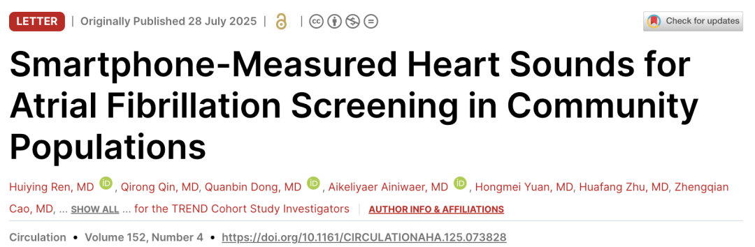 [2] Ren, HY., Dong, QB., Qin QR. et al. Smartphone-Measured Heart Sounds for Atrial Fibrillation Screening in Community Populations. Circulation [epub-ahead]