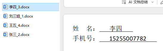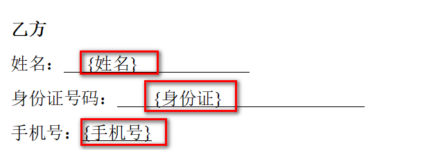 其中word中需要替换的标签和Excel的列名需要保持一致,我的是这样的 word内容: