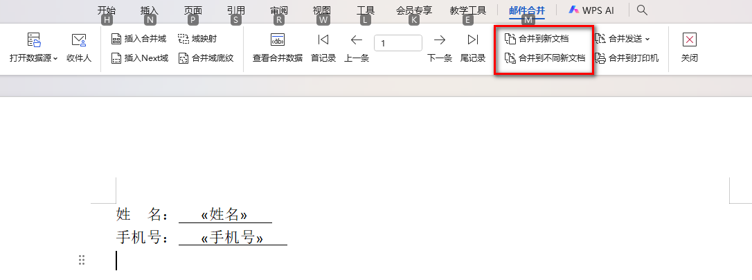 我一开始想到的是使用wps自带的邮件合并功能,后来发现我自己电脑上的邮件合并无法打开Excel文件。
