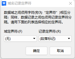 「域定界符:」数据源标题和数据记录之间的分隔符