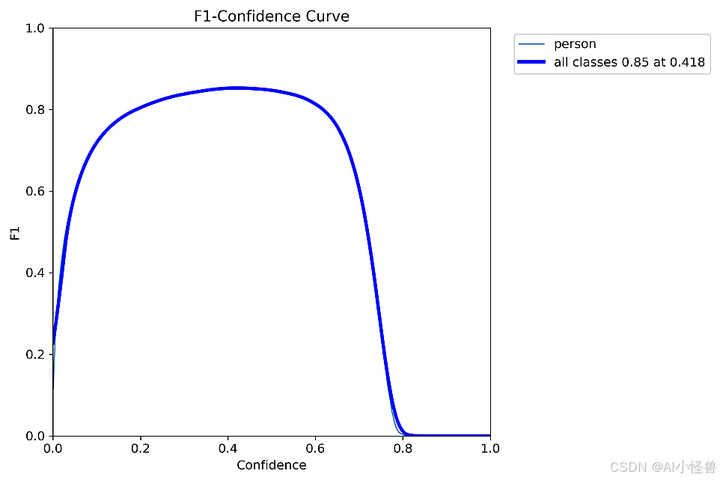 Speed: 0.3ms preprocess, 2.6ms inference, 0.0ms loss, 1.4ms postprocess per imageF1_curve.png:F1分数与置信度(x轴)之间的关系。F1分数是分类的一个衡量标准,是精确率和召回率的调和平均函数,介于0,1之间。越大越好。