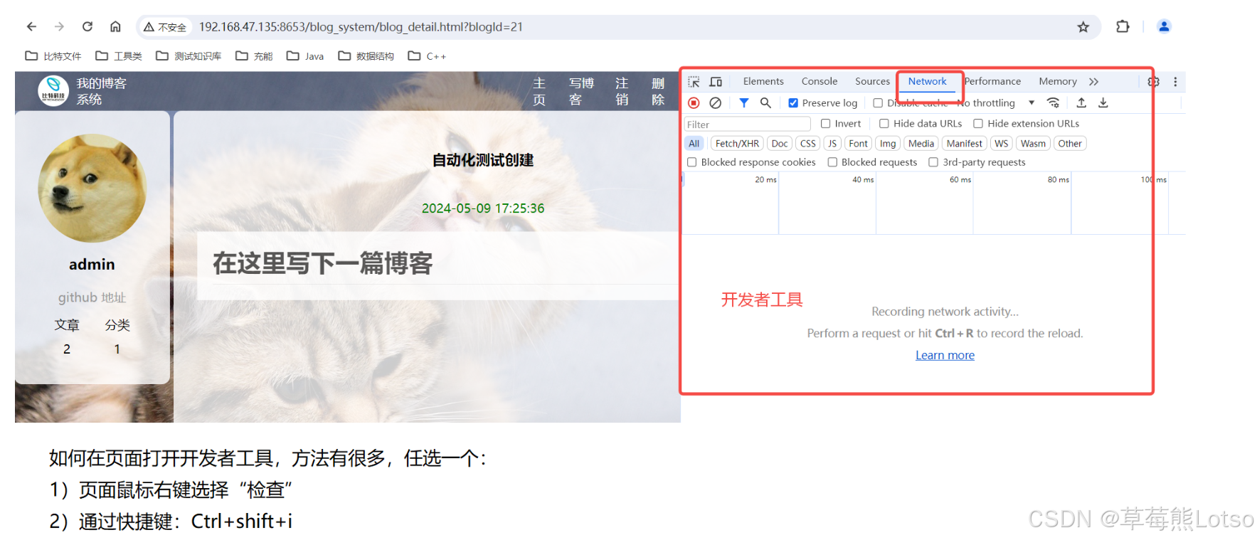 我们现在对一个博客系统进行接口测试,现在我们来看看。