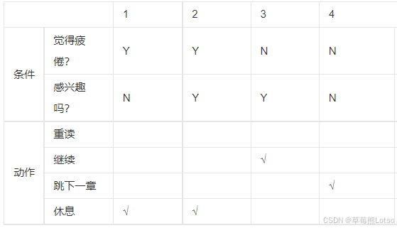 通过该图,可以把所有条件对应的结果清晰的表达出来。我们就需要借助该表来清晰的写出测试用