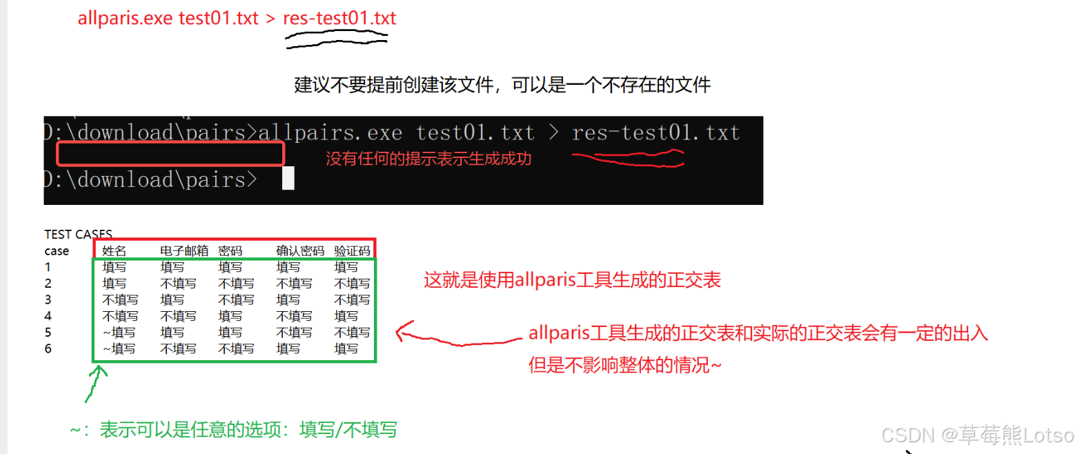 4.使用allpairs.exe工具对txt生成正交表文件