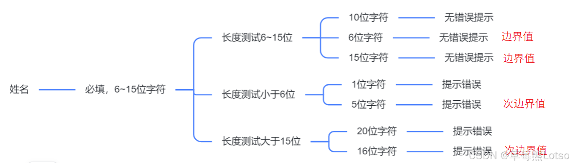 上述设计的测试用例,存在用例还未完全设计完成,“姓名必填,6~15位的字符类型”,这样⼀个