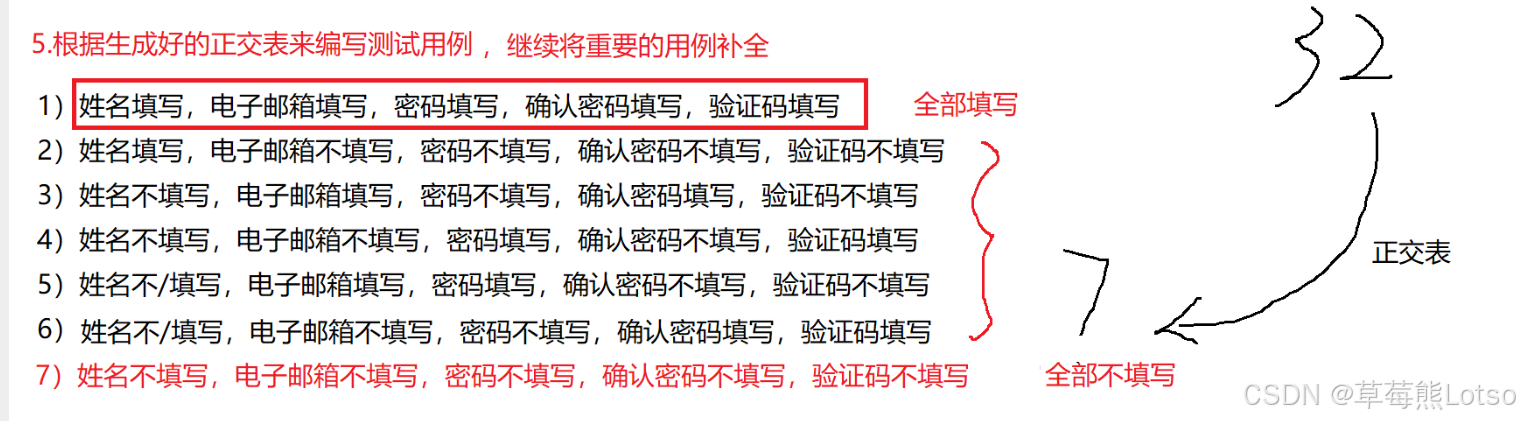 5.根据生成好的正交表来编写测试用例,继续将重要的用例补全