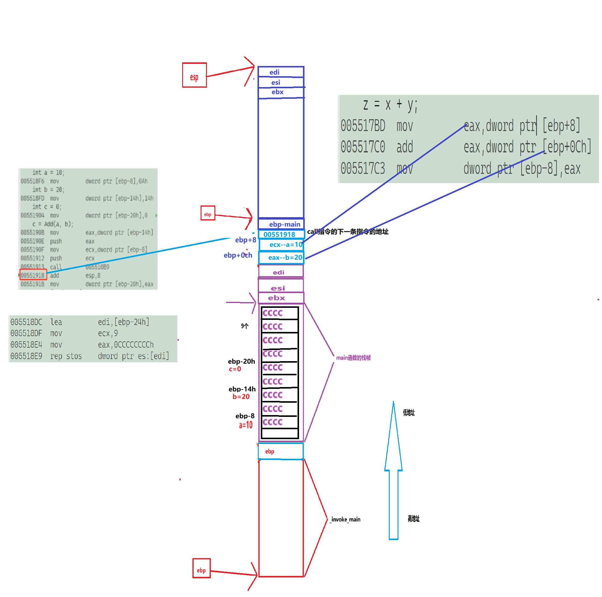 //以上这四串代码是在初始化main函数的栈帧空间