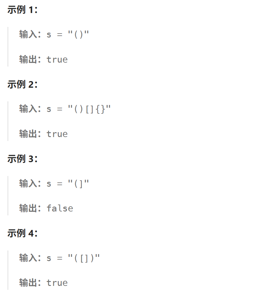 思路:借助数据结构-栈,遍历字符串,左括号入栈,右括号取栈顶元素进行比较,看是否匹配