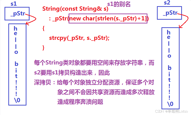 string s2 = s1; // 浅拷贝:s1._str 与 s2._str 指向同一块内存