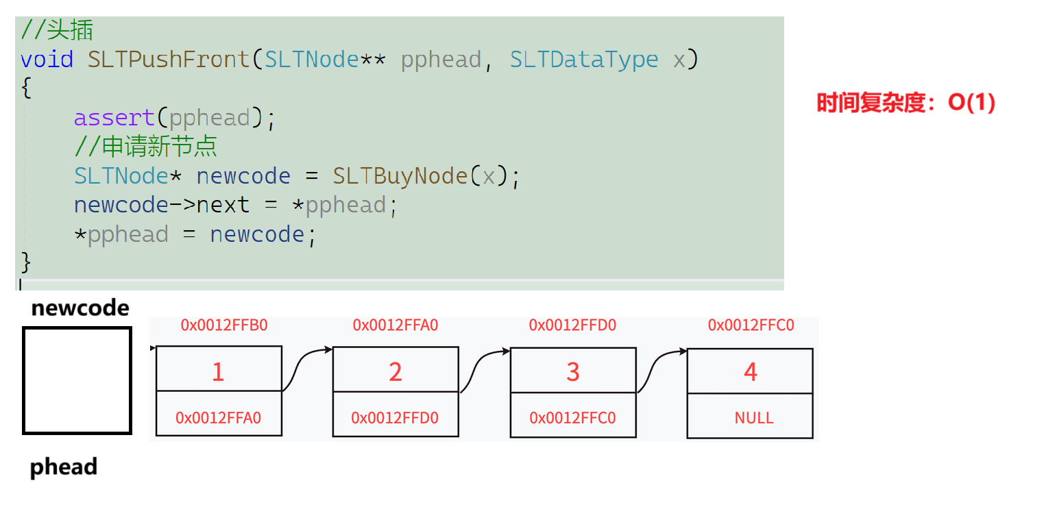 void SLTPushFront(SLTNode** pphead, SLTDataType x)
