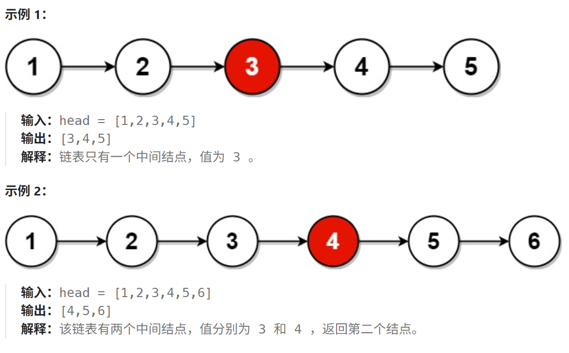 3.我们以两种不同的情况为结束条件,进行循环,当循环结束时,slow结点的位置就是中间结点的位置,返回slow就可以了