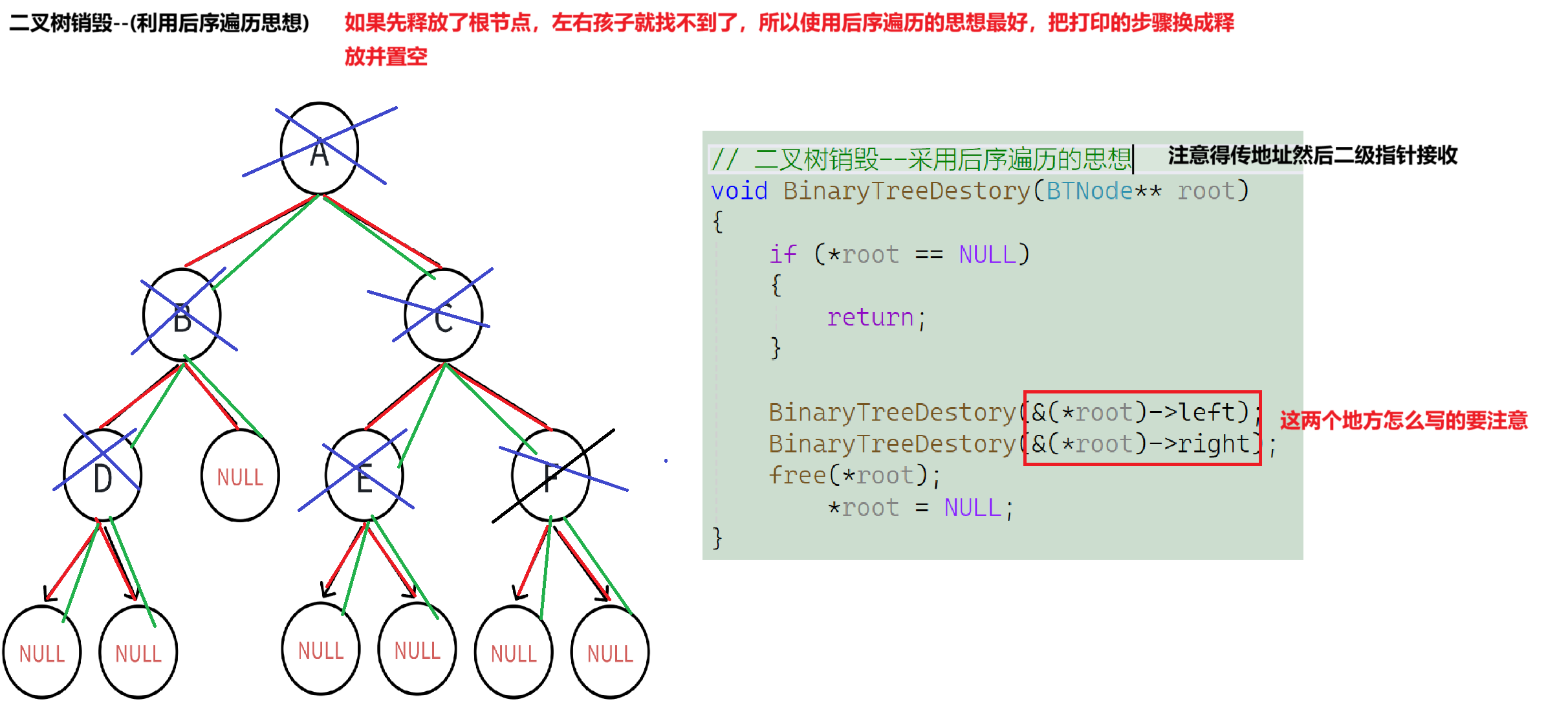 --由于提前释放根节点无法找到其左右节点,所以我们得采用后续遍历的思想,最后处理根节点,