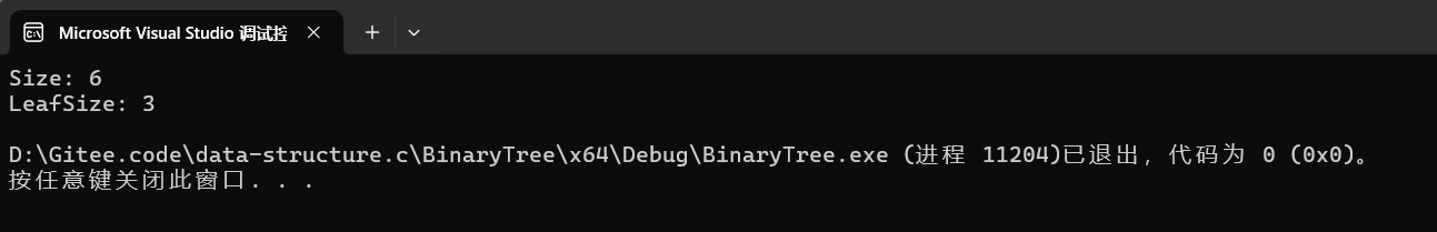 printf("LeafSize: %d\n", BinaryTreeLeafSize(root));
