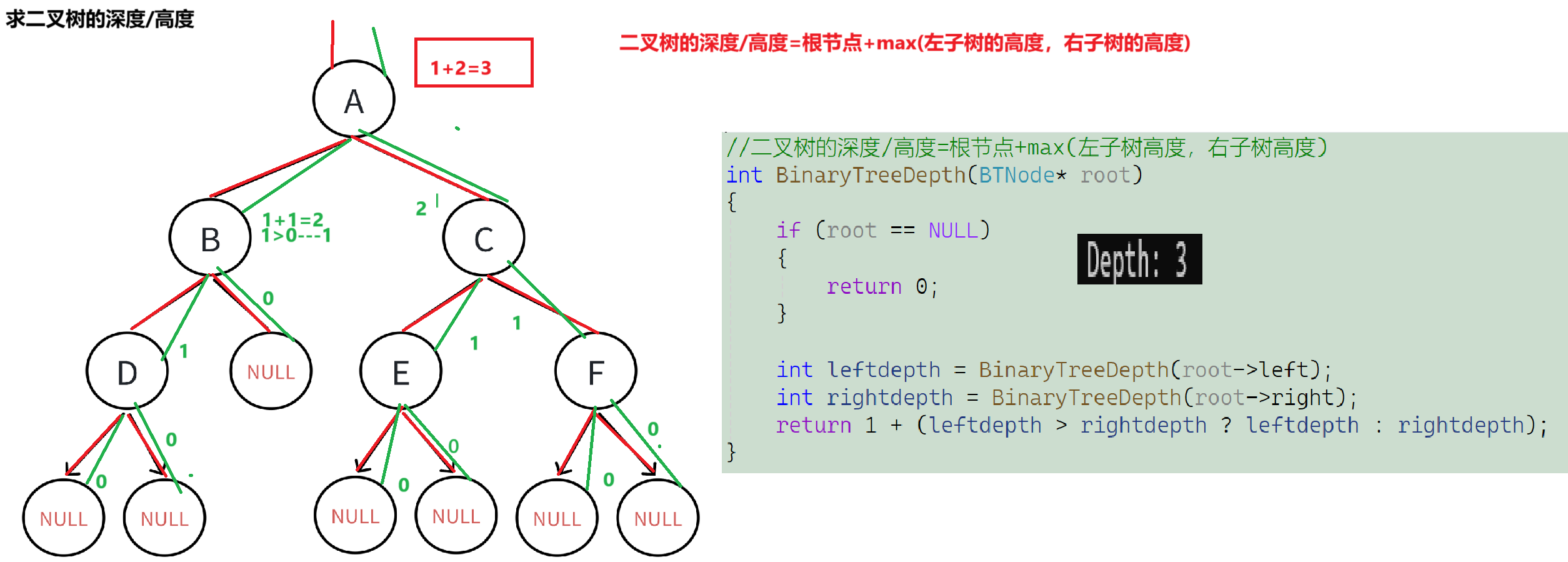 //二叉树的深度/高度=根节点+max(左子树高度,右子树高度)