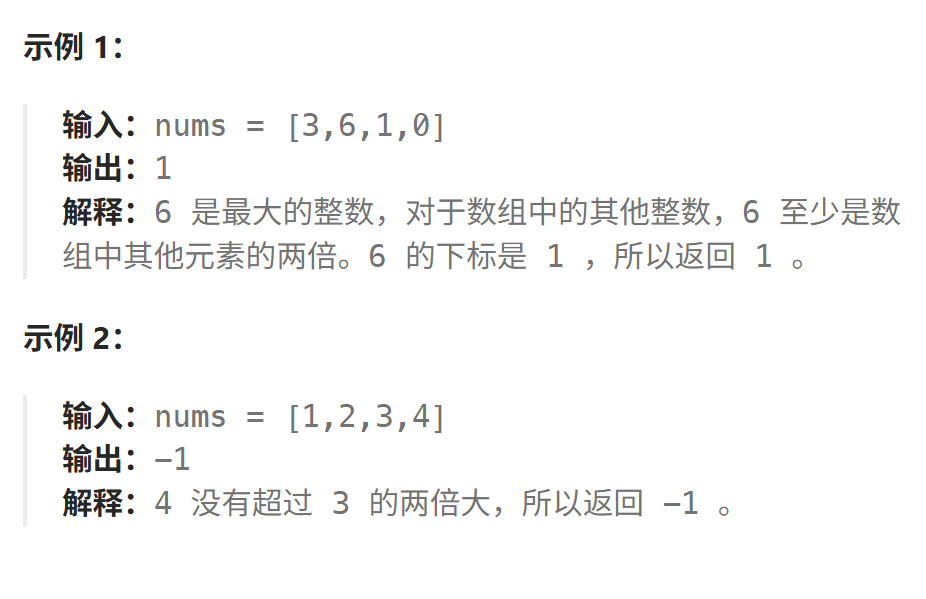 int dominantIndex(int* nums, int numsSize) {