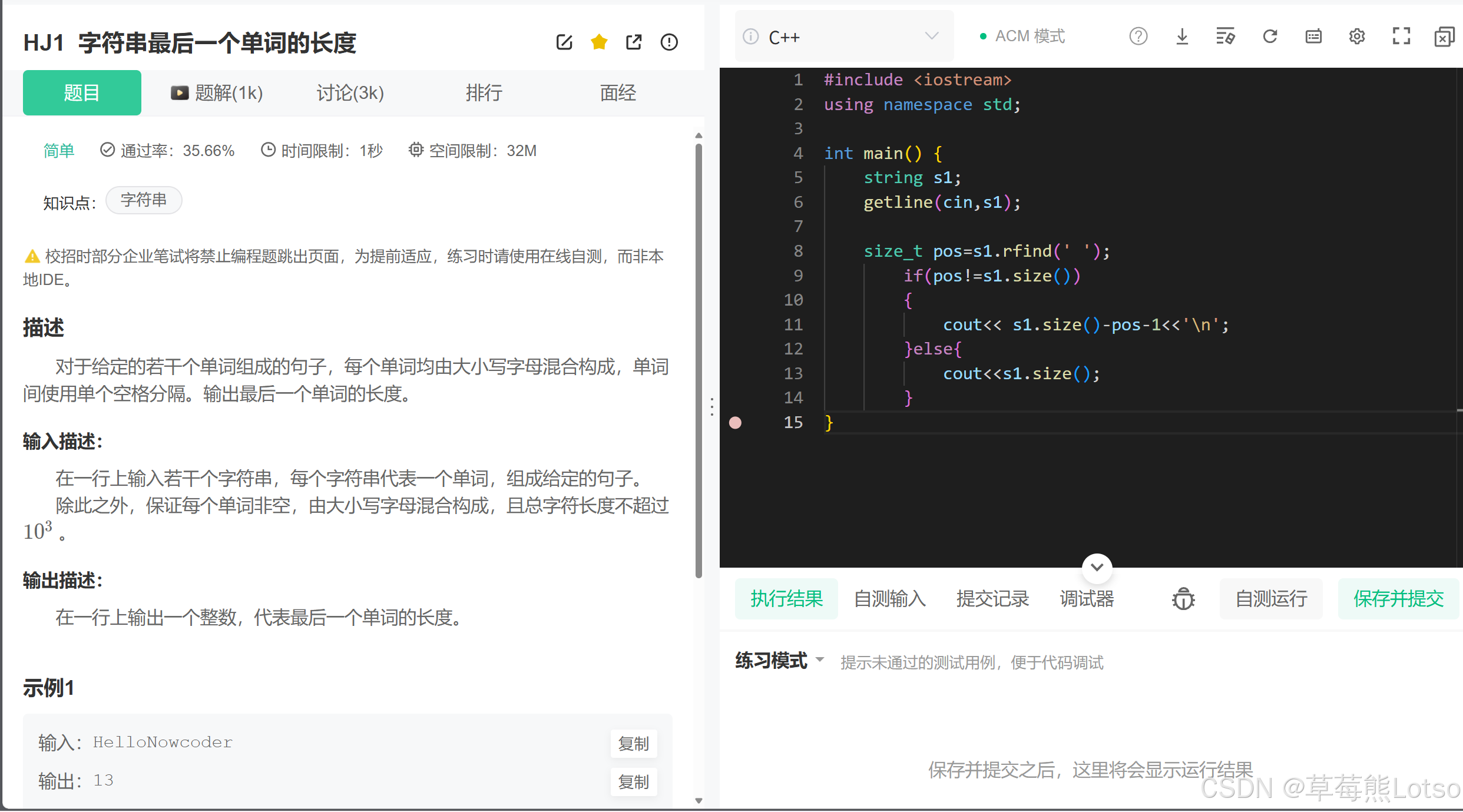 比如我们下面这个题就必须使用getline,直接用cin是不行的