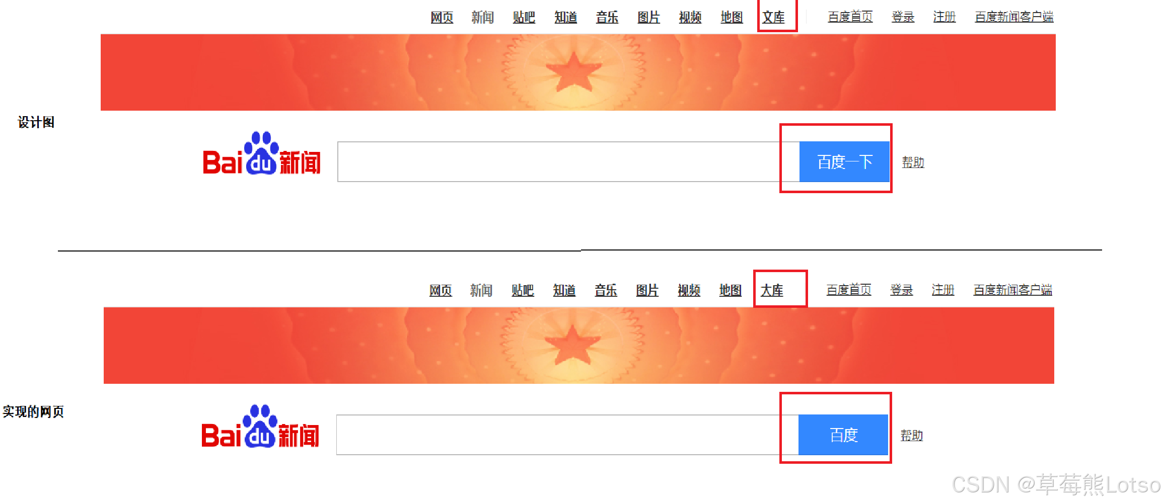 举个 “找茬” 例子:若设计图中 “百度新闻” 页面有 “百度一下” 按钮,而实际页面只显示 “百度” 二字,或 “文库” 模块被错写为 “太库”,均属于 UI 测试需发现的问题。