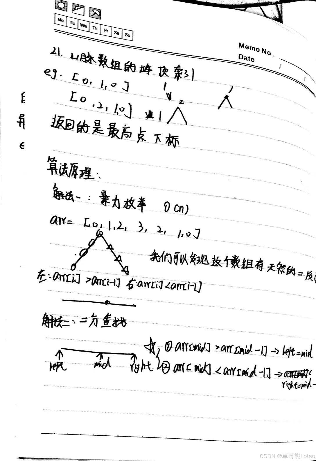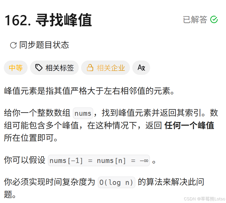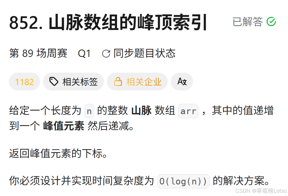 技术之路难免有困惑,但同行的人会让前进更有方向~愿我们都能在自己专注的领域里,一步步靠近心中的技术目标!结语:本文通过两道力扣算法题(852、162)讲解二分查找在寻找数组峰值中的应用。以题带点,详细分析了山峰数组的特性:峰顶同时大于左右相邻值,左侧呈上升趋势,右侧呈下降趋势。解题时抓住"二段性"特征,通过比较中间值与相邻元素的关系,逐步缩小搜索范围。