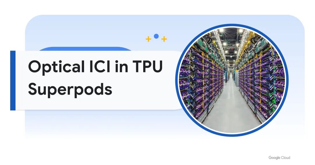 - 2020年TPU v3:超级集群芯片数提升至1024颗,仍保持2D环面拓扑,单芯片ICI带宽维持800GB/s,首次引入光互连技术,采用400Gbps有源光缆(AOC),光通道波特率为50G;