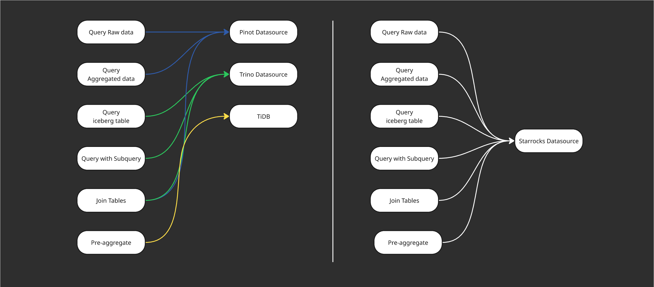 与此同时,我们还针对 Pinot 的语法特性进行了系统化的方言转换(下文将详细介绍),确保不同架构模式下(无论是存算一体还是存算分离),均可通过 StarRocks 实现统一的查询体验与结果一致性。