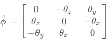反对称矩阵: 是一种特殊的方阵,其转置等于其负数,对于三维向量 θ=[θx,θy,θz]T,其反对称矩阵定义为: