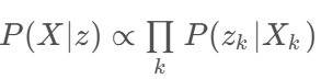根据贝叶斯定理得到:P(X|z) ∝ P(z|X) * P(X),假设测量值相互独立,这个联合概率可以分解为: