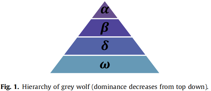 灰狼群体具有严格的社会等级结构,GWO 算法将其映射为优化过程中的候选解: