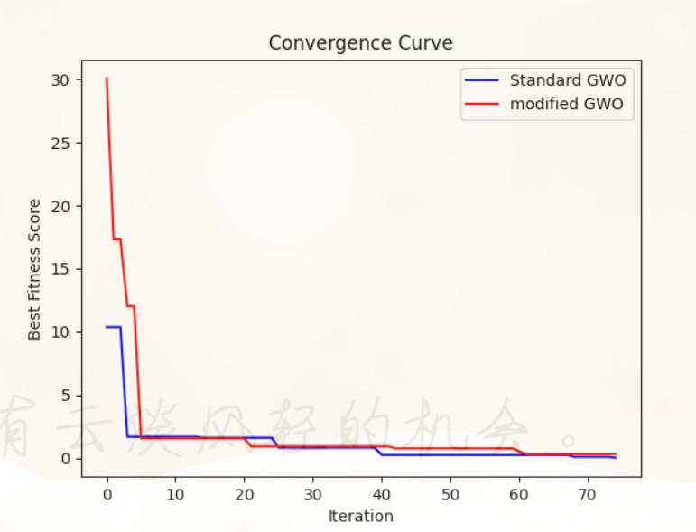 GWO 就是: “让最厉害的三只狼(α,β,δ)当‘导航员’,其余狼每隔一步都向它们学习一次,逐渐把整群狼拖到谷底。” 把上面的手算步骤对照代码走一遍,你会发现“包围-狩猎-攻击”不再抽象,而是每一步都在做向量加加减减——这就是灰狼优化的全部秘密。