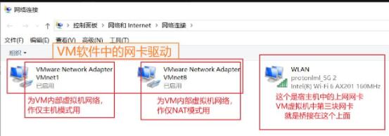 且VM安装在宿主机中,宿主中就有这三块网卡的驱动。