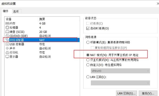 上方选定VMnet8(NAT模式);