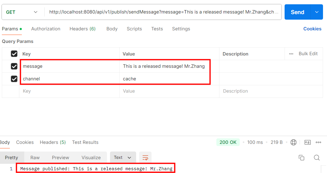 public String sendMessage(@RequestParam(value = "message") String message, @RequestParam(value = "channel") String channel) {