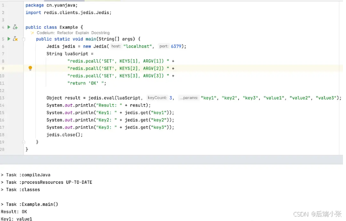 上述例子,整个 luaScript 字符串脚本作为一个整体被执行且不被其他事务打断,这就是一个原子性的操作。