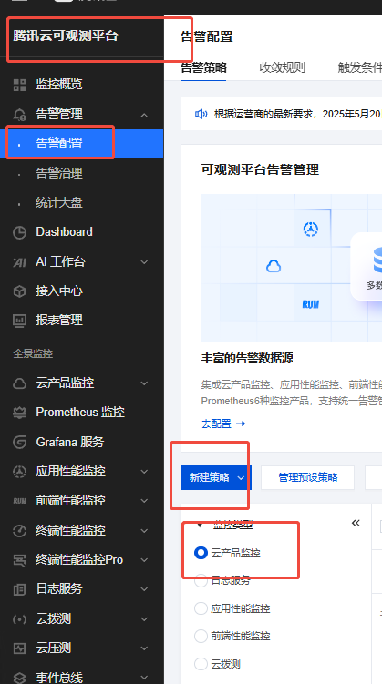 使用腾讯云可观测平台配置云产品告警